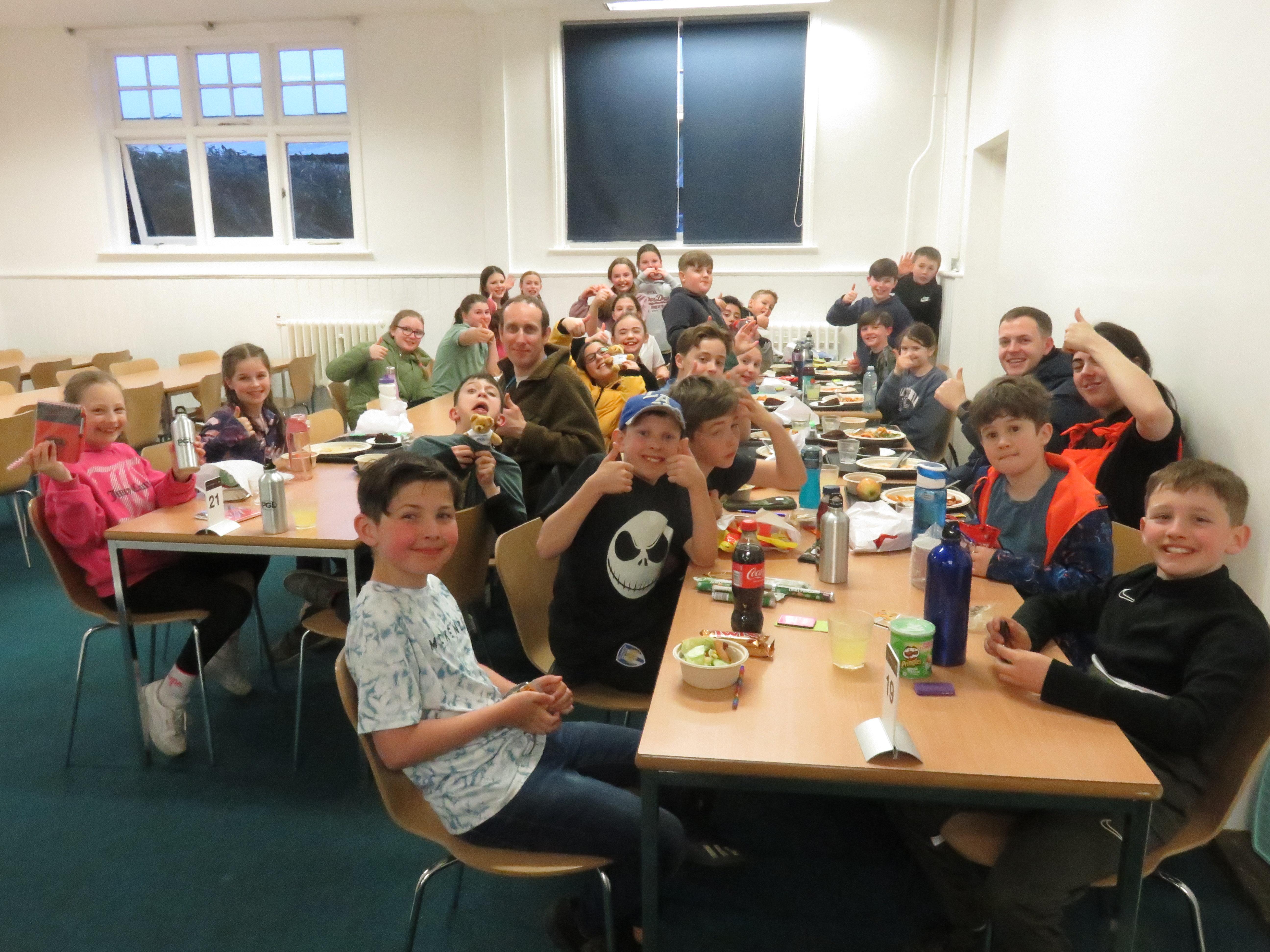 Following a visit to the shop to stock up on provisions (ie sweets!) we made our way to the dining hall for our first meal of the week.  The verdict:  '10 out of 10!' - the piri-piri chicken was a big hit (William:  "That's the nicest thing I've ever tasted!") and the meatballs went down a storm too (Freddie:  "Best meatballs ever!") and the chocolate cake was to die for.